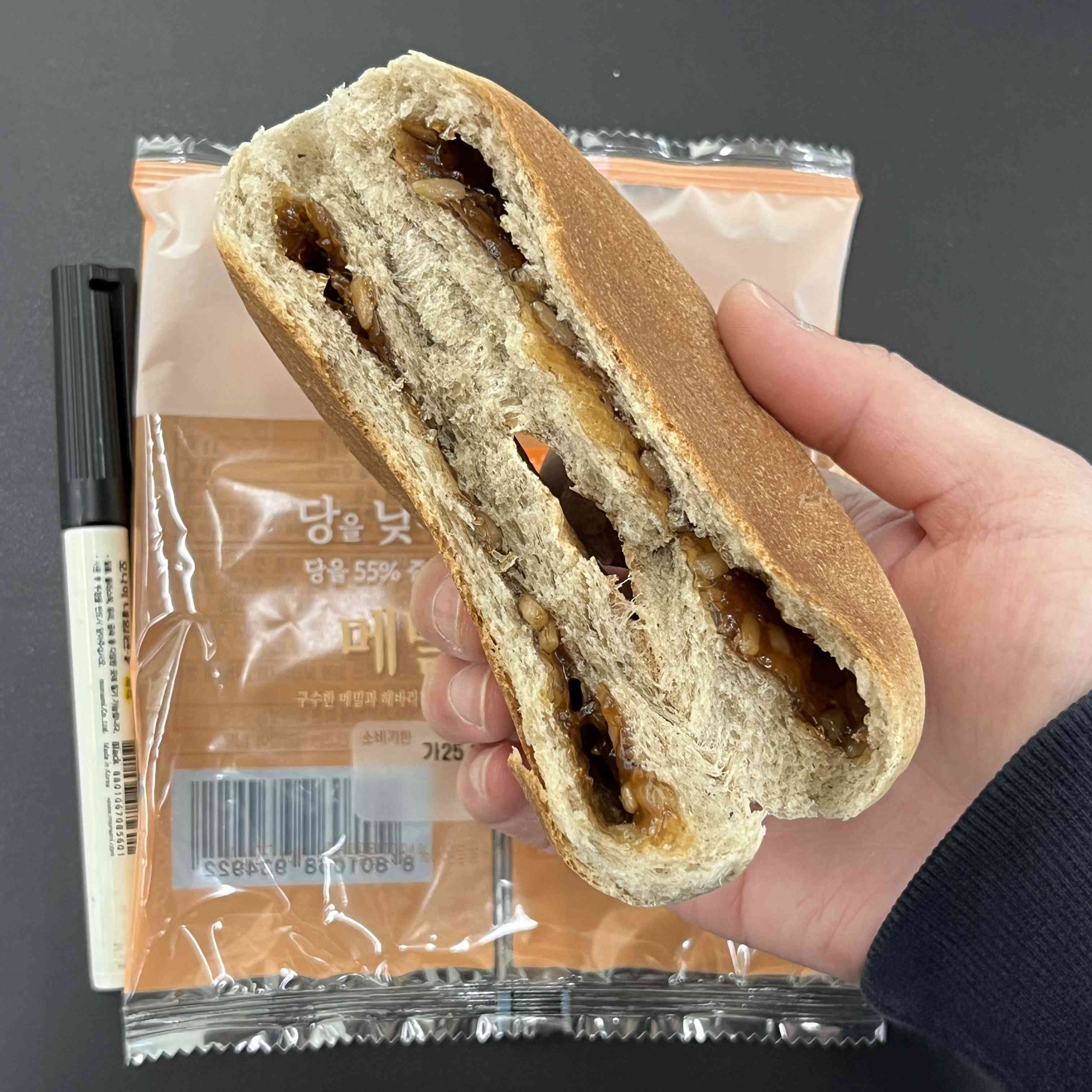 반을 가르면 해바라기 씨앗이 들어있는 꿀이 제법 들어가있다. 그리고 맛도 무난해서 괜찮고 영양성분도 나쁘지 않아서 죄책감도 적다. 상온 상태로 먹어도 되긴 하지만 약간 에어프라이어 등에 데워먹어도 맛있다고들 한다. 다음에 또 사 먹을 의향이 있는 오랜만에 괜찮은 편의점 디저트 빵