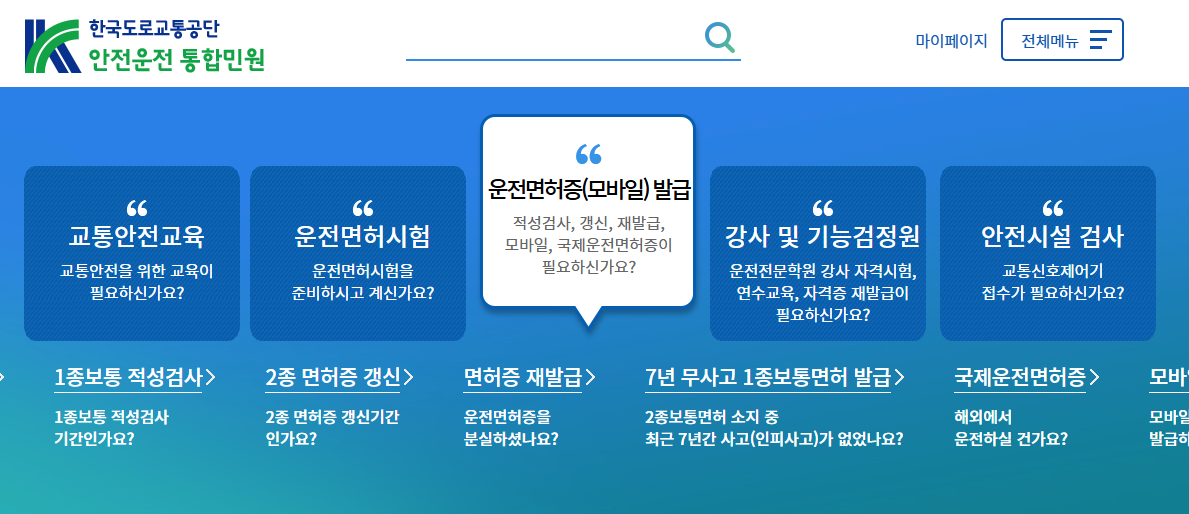 ✅신청 사이트: 도로교통공단 '안전운전 통합민원' 홈페이지