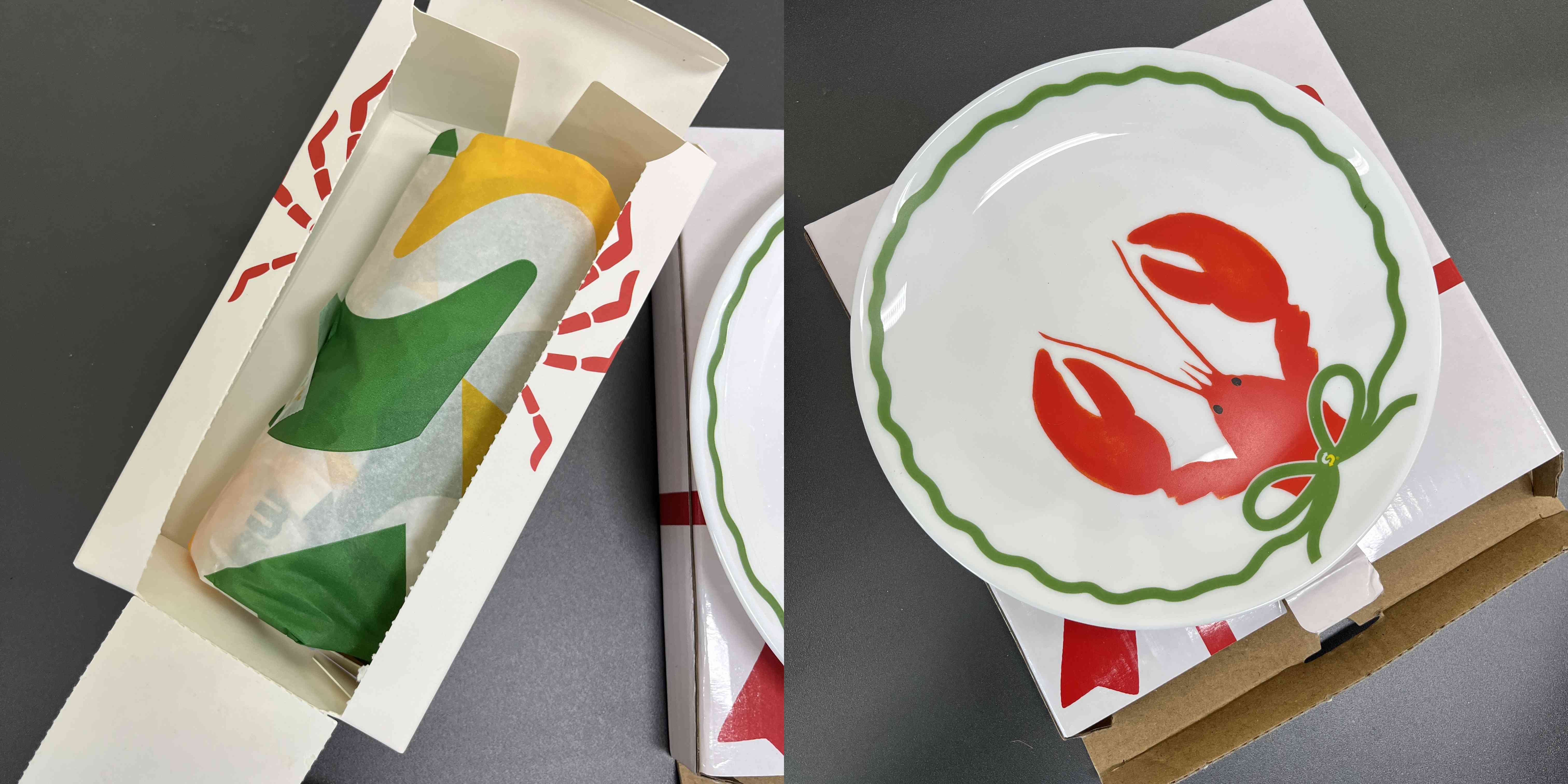 랍스터 부분에는 절취선이 돼있어서 그냥 부윽 뜯으면 편하게 뜯어진다. 접시는 랍스터가 있는 그냥 귀엽고 리본 가운데는 작게 서브웨이 로고가 있다. 그냥 증정용 접시 정도의 퀄리티다.