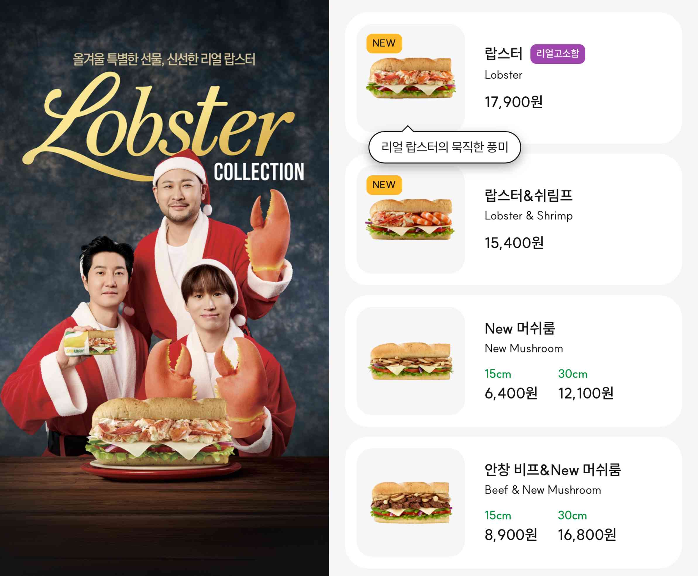 가격은 랍스터가 비싸서 그런지 15cm 단품 17,900원 정말 비싸다. 랍스터&쉬림프는 랍스터가 조금 덜 들어가서 그런지 15,400원이다. 과연 맛은 있을지 먹어봤다.
