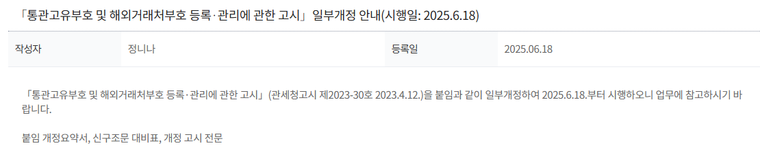 ✅최근 쿠팡 해킹 때문에 생긴 것인가? NO 상황이 그렇게 돼버린 것처럼 보이지만 관세청에서는 이미 6월에 관련 공고를 냈었다.