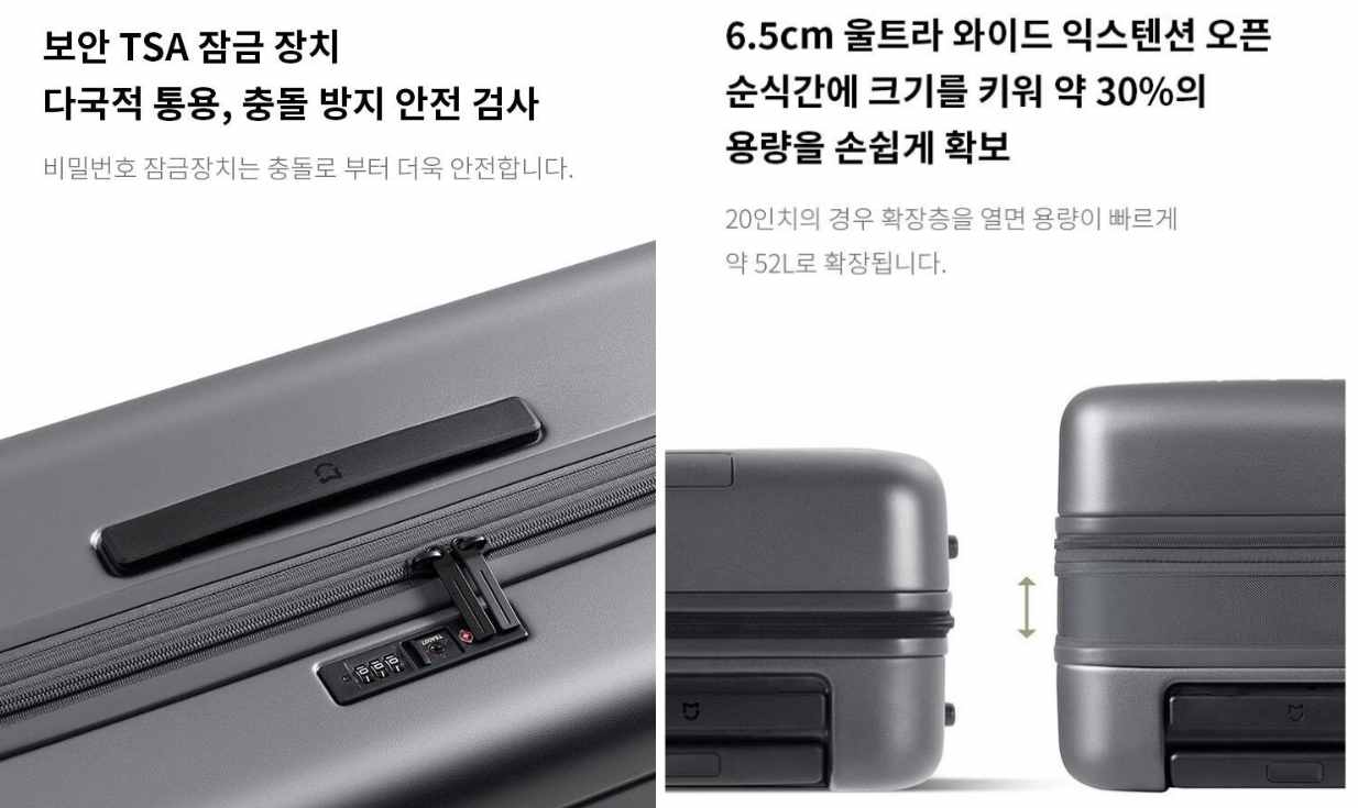 가장 많이 사용하고 튼튼한 샘소나이트부터 아메리칸투어리스터, 그리고 스위스 밀리터리나 그보다 저렴한 브라이튼 캐리어 등을 보다가 갑자기 떠오른 샤오미로 결정을 하게 됐다. 내가 고른 것은 샤오미 미지아 확장형 24인치 캐리어다.
