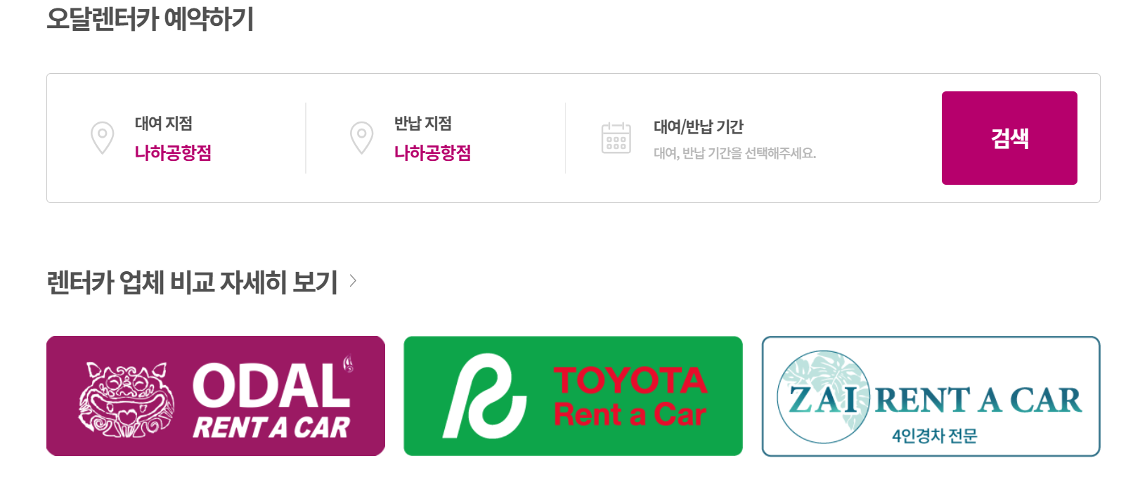 다양한 렌터카 업체가 있지만 너무 저렴한 것은 신뢰가 가지 않았다. 정비가 미숙하거나 만에 하나 있을 사고에 대처가 미흡할 수도 있다는 생각 때문이었다. 그런데 한국인이 운영하고, 한국어가 가능한 직원들이 상시로 있는 곳을 찾았는데 '오달 렌터카'였다. 이곳에서는 도요타 렌터카와 오달 렌터카 둘 다 예약이 가능했는데 도요타 렌터카는 예약을 이어주는 플랫폼 역할 같았고 오달 렌터카는 직접 운영하는 것 같았다. 처음엔 도요타 렌터카가 공항과 더 가까웠고 더 좋은 차량들이 많았지만 한국어가 가능한 직원은 없고 내가 봤을 때는 조금 더 비쌌던 것 같아서 '오달 렌터카'로 선택했다. 결과적으로는 너무 만족스러웠다.