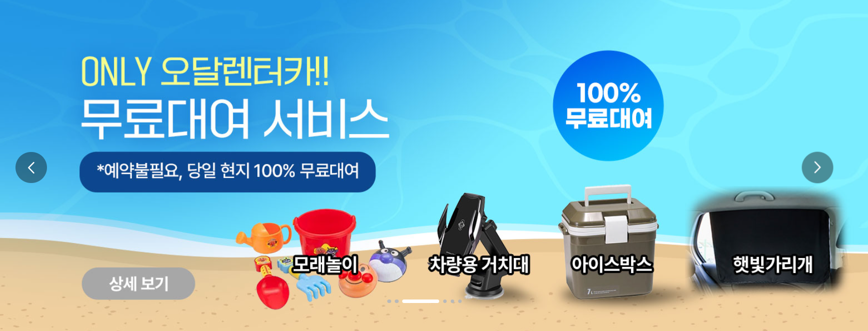 햇빛 가리개나 큰 가방, 아이들 모래놀이 등도 무료 대여가 가능한 것도 장점. 반납할 때는 근처 주요소에서 기름을 꽉 채우고 반납하면 되는데 그러지 않을 시에는 일반적인 주유 시세보다 더 많이 추가로 지불하게 된다. 주유도 어떻게 하는지도 안내해 준다.