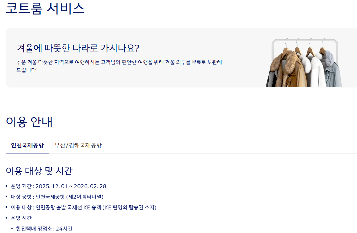 항공권은 한 달 전 예약 및 좋은 시간대가 대한항공이라서 대한항공으로 발권하였다. 인당 왕복 대략 55~60 사이 정도 들었고 좋았던 점은 대한항공은 인천공항에서 겉옷 보관을 5일까지 무료로 해준다. (코트룸 서비스) 그래서 갈 때 입었던 패딩은 공항에 보관하고 다시 돌아왔을 때 찾아서 입고 가서 짐을 줄일 수 있어서 편했다.