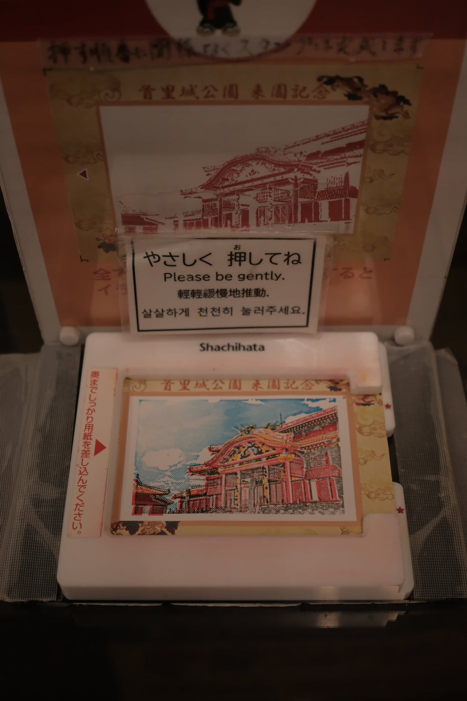 그리고 유료 구역을 관람하다가 스탬프를 발견했는데 검은색, 노란색, 붉은색, 파란색을 다 찍으면 슈리성 정전 완성. 아니 어찌 저럴 수가.. 뒤늦게 발견해서 찍다가 하나를 발견 못 했는데 안내하시는 분께 물어봐서 찍고 나왔다. 알려주신 분께 스탬프 찍은 거 보여주면서 고맙다고 하는데 다른 스탬프 위치도 알려주셔서 가서 완성.