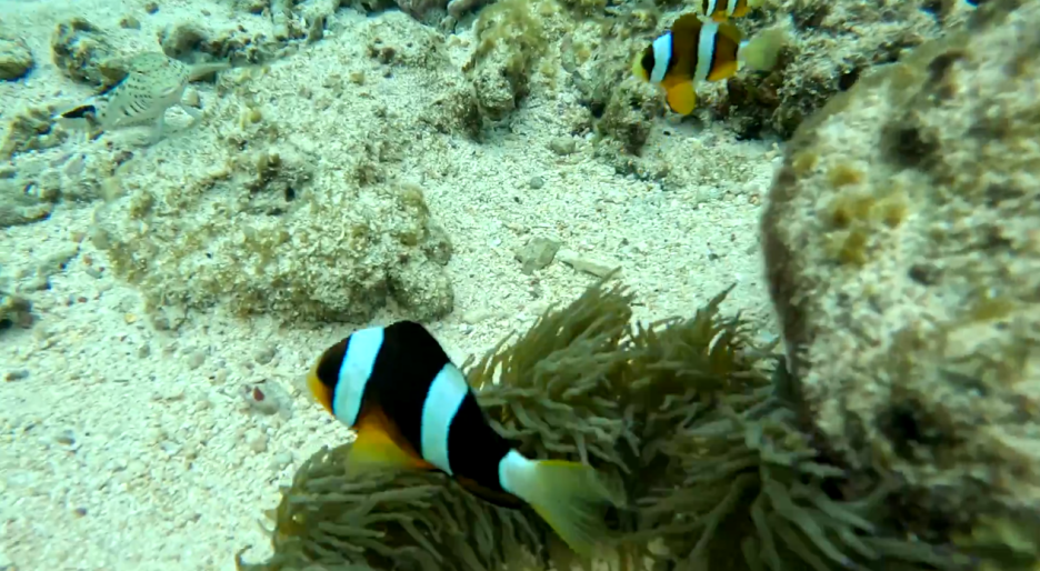 걸어서 5~10분 정도 이동한 다음 도착해서 오리발 끼고 물안경 끼고 간단한 설명 후에 바로 들어간다. 판때기 같은 거 하나에 달린 밧줄 잡고 쭈욱 이동하는데 무슨 들어가자마자 바로 물고기 밭임. 밖엔 흐린데 물 안은 정말 맑았다. 보트 이동이 없어서 그런지 거의 한 40분 정도 한 것 같고 업체 분이 열심히 영상과 사진을 찍어주신다.