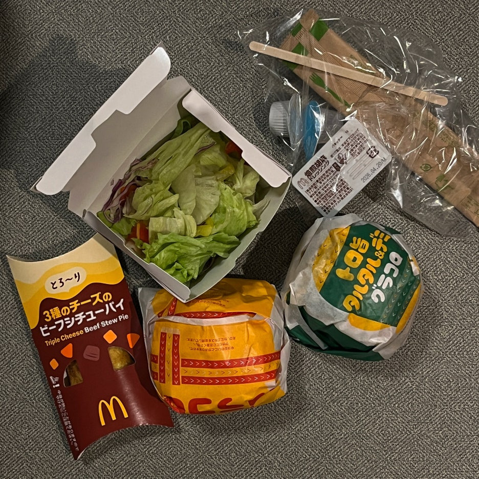 일본에서는 11월 말부터 연말 연초까지 판매하는 한정 메뉴로 그라탕 고로케 버거. 그리고 타르타르랑 데미글라스 소스를 넣은 버전이 있기에 샀다. 그리고 소고기 스튜 파이, 샐러드도 처음 봐서 샀다. 한국도 샐러드 팔았으면 좋겠고 빵이 무지 맛있었다. 마카롱도 팔길래 나중에 사 먹었다. 오키나와엔 미군 기지가 있어서 그런지 기다리고 있는데 미군들도 와서 갑자기 사고 감.