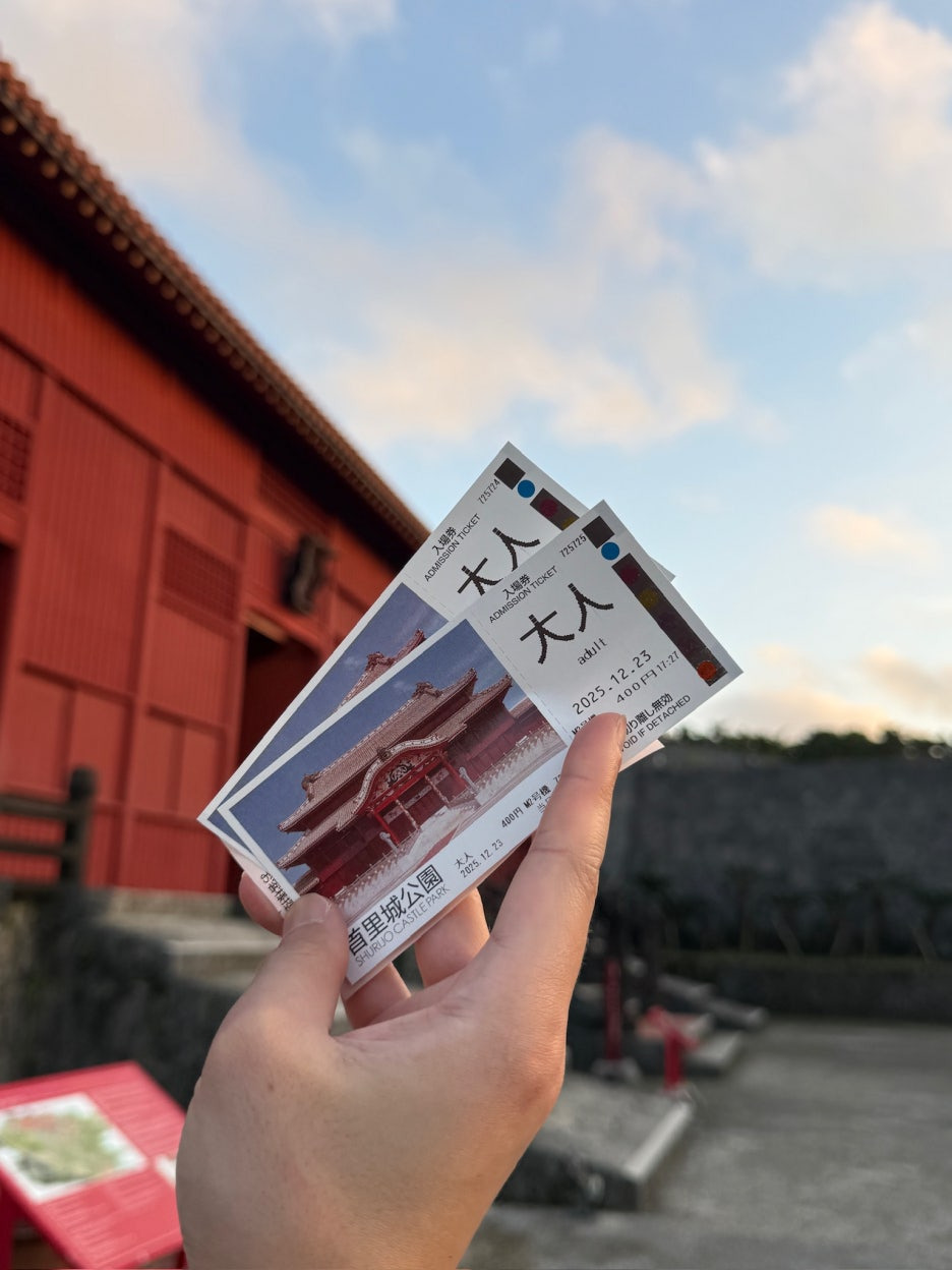 - 유료 구역에만 해당 1인당 400엔 *26년 말에서 27년 초 복원 완료 후에는 800엔 예정이며 현재 복원 작업 중이라 슈리성 정전의 일부만 관람이 가능