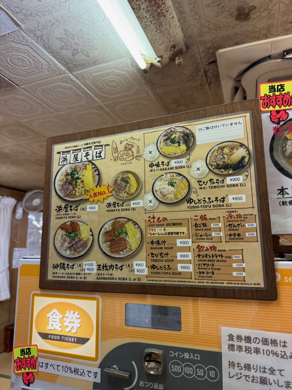 베셀로 돌아와 씻고 근처에서 밥을 먹기로 해서 '하마야'라는 소바 집을 갔다. 차로 가면 가깝기는 한데 주변 주차가 좀 어려운 것 같았다. 허가되지 않은 수평주차를 하게 되면 불법주차로 바로 과태료다. 그래서 걸어갔는데 베셀에서 약 40분 정도 걸린 듯. 하지만 오키나와에서 정말 맛있게 먹었던 음식이다.