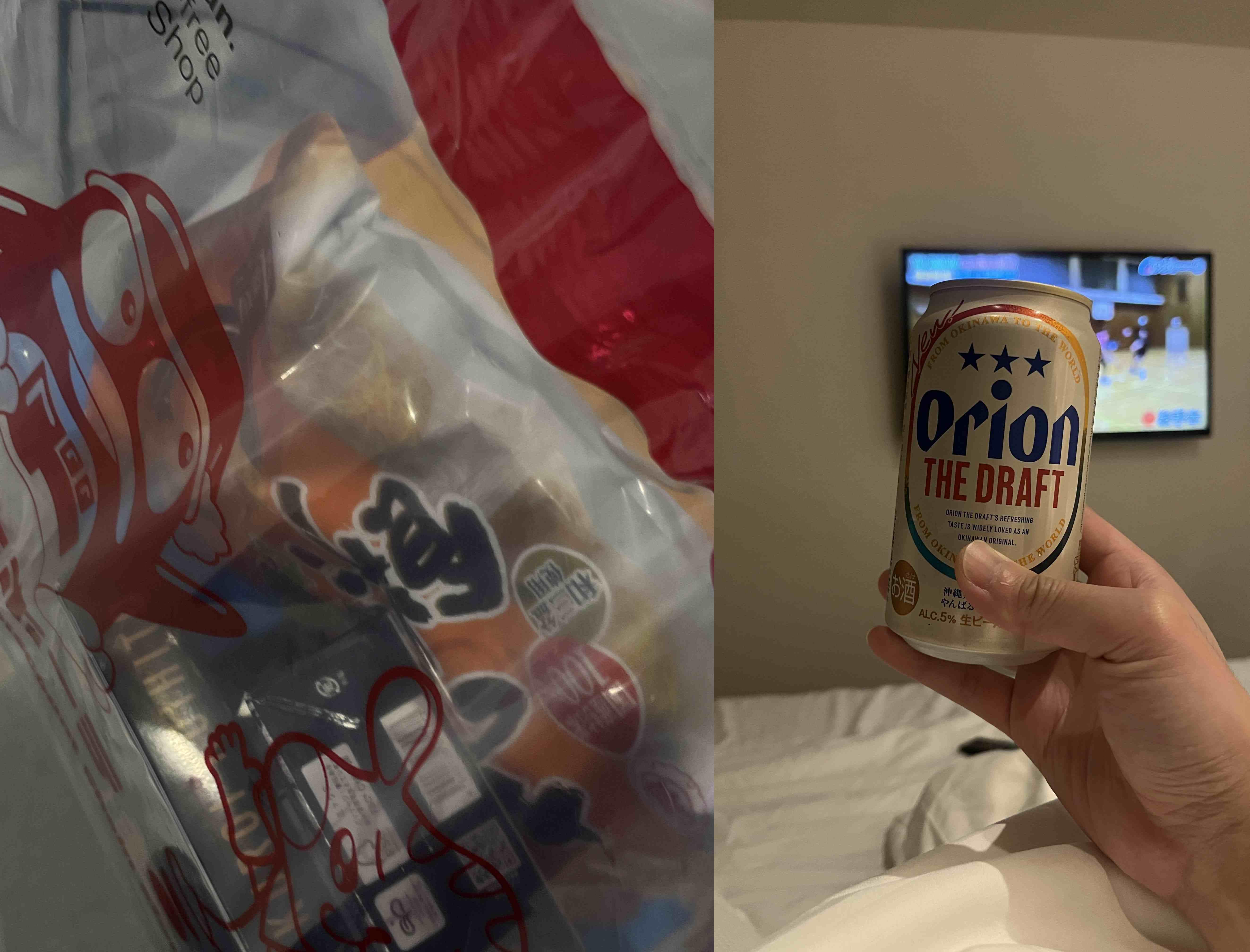 비바람을 뚫고 오니 너무 힘들었다. 숙소에서 어떻게 온지도 모르겠고 씻은 후에 돈키호테에서 유일하게 텍스 리펀으로 구매하지 않은 오키나와 맥주인 오리온 맥주를 들이켜고 바로 딥슬립했다.