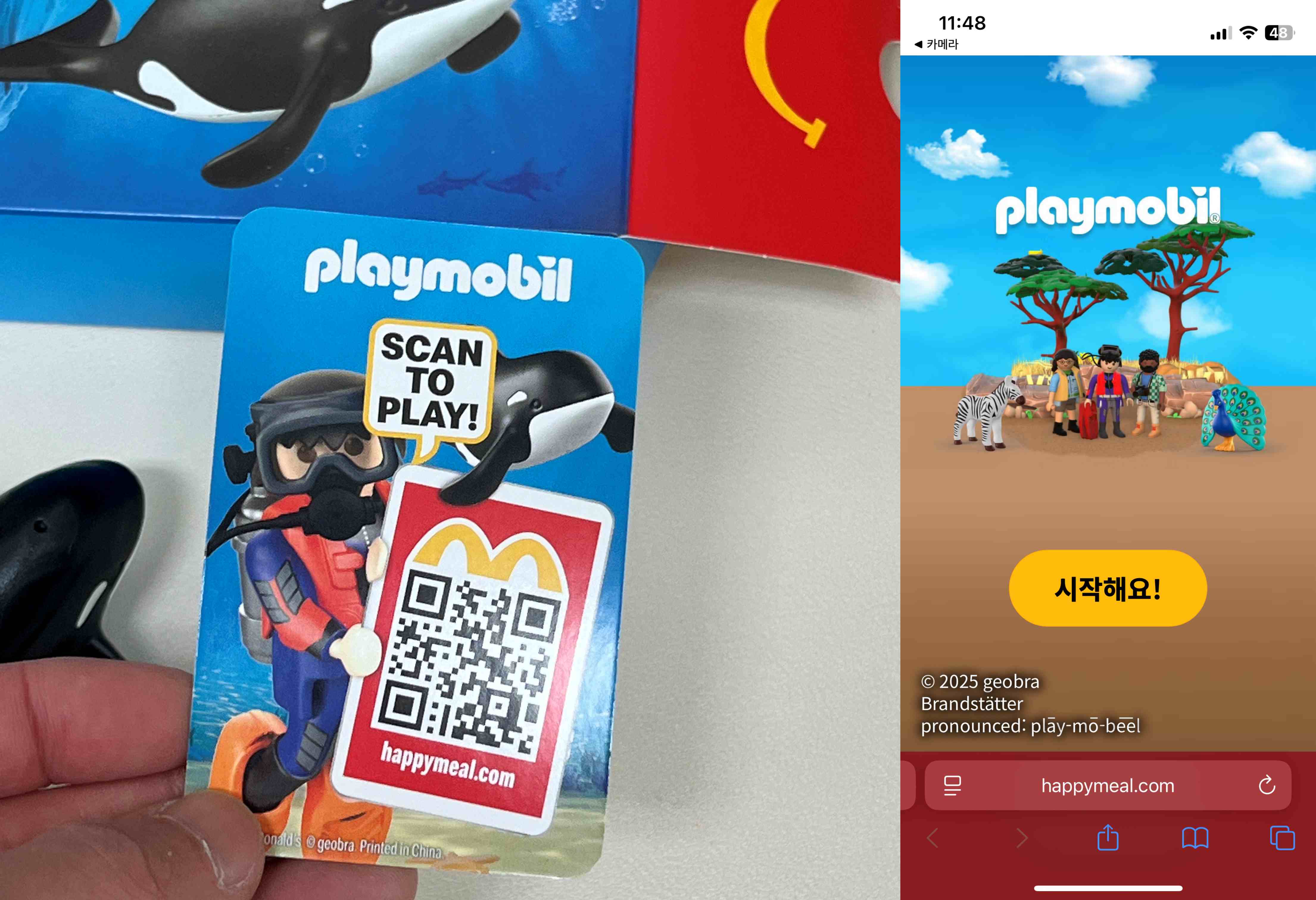 또한, 카드 뒤 혹은 플레이모빌 박스에 QR 코드가 있는데 이를 들어가면 간단한 해피밀 게임을 할 수도 있다. 그냥 미니게임이고 이번 플레이모빌은 개인적으로 해양동물 중에서는 범고래와 바다거북이 나은 것 같다.