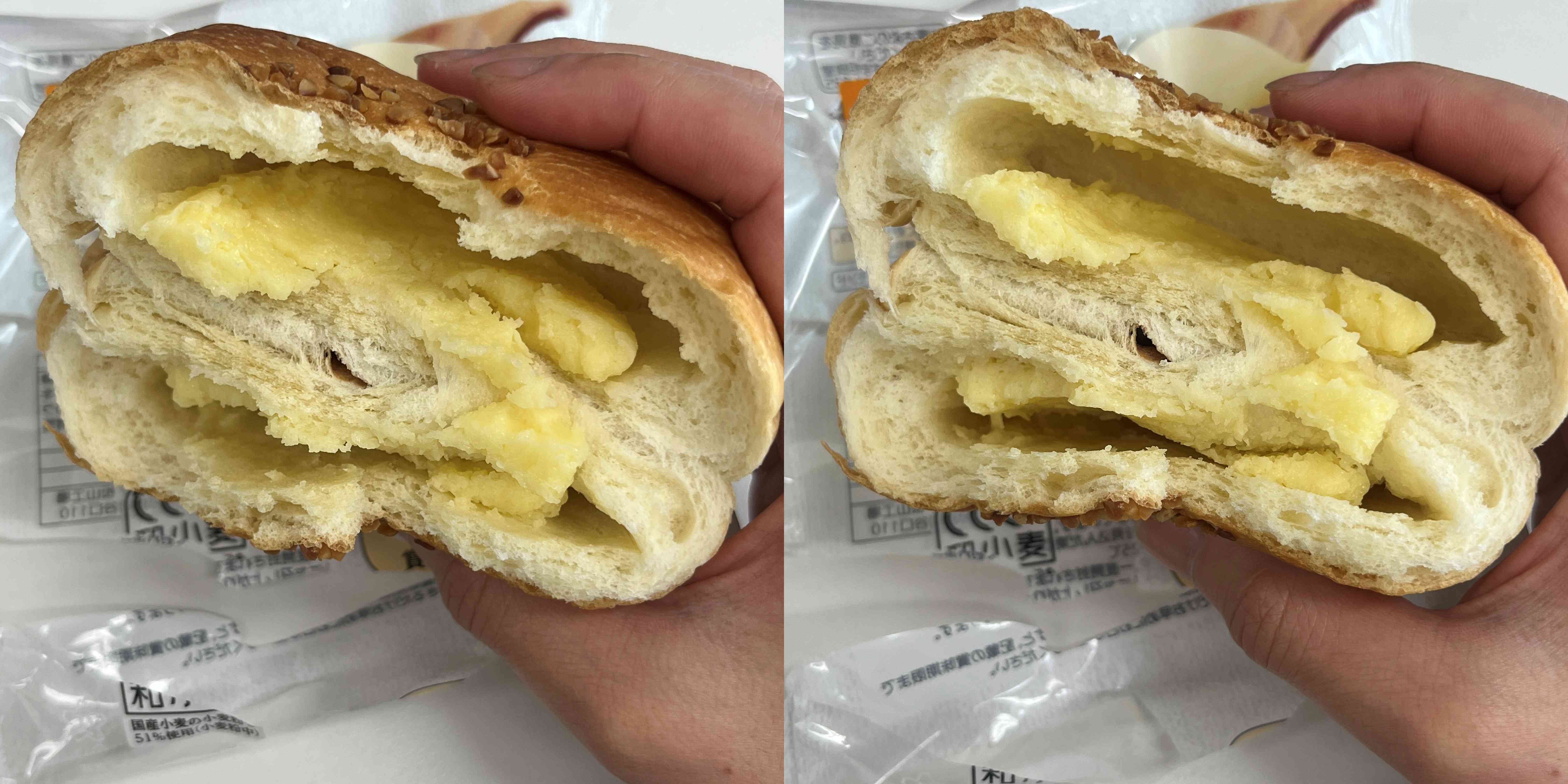 크기는 네임펜보다 조금 안되는 길이고 두께는 적당히 두툼하다. 뭔가 한국 편의점빵과 다른 일본 편의점 빵 특유의 향과 촉감이 있다. 더 단단하고 차갑다고 해야 하나? 그런 느낌이 좀 있다.