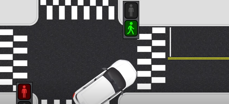 --> 횡단보도의 신호가 녹색일 때 보행자가 횡단보도를 거의 다 건너거나 중앙선을 넘어 반대편까지 갔을 때 신호를 무시하고 우회전이 가능했으나,