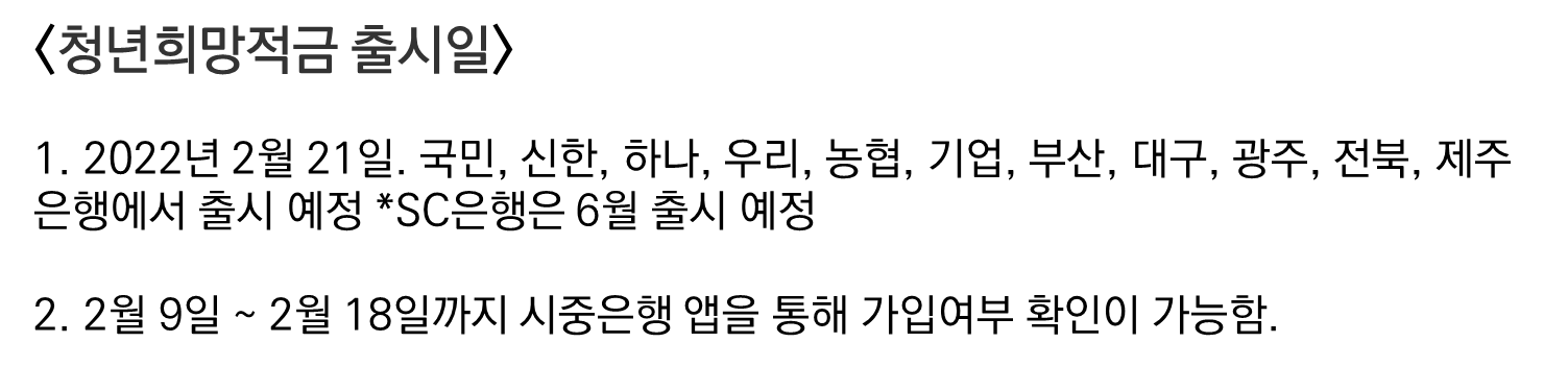 2022년 2월 21일에 11개 시중은행에서 정식으로 출시될 예정인 상품인 청년희망적금에 대해 알아보자.