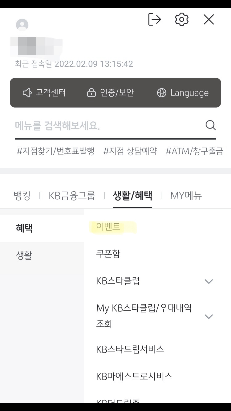 2. 생활혜택 -> 이벤트 클릭