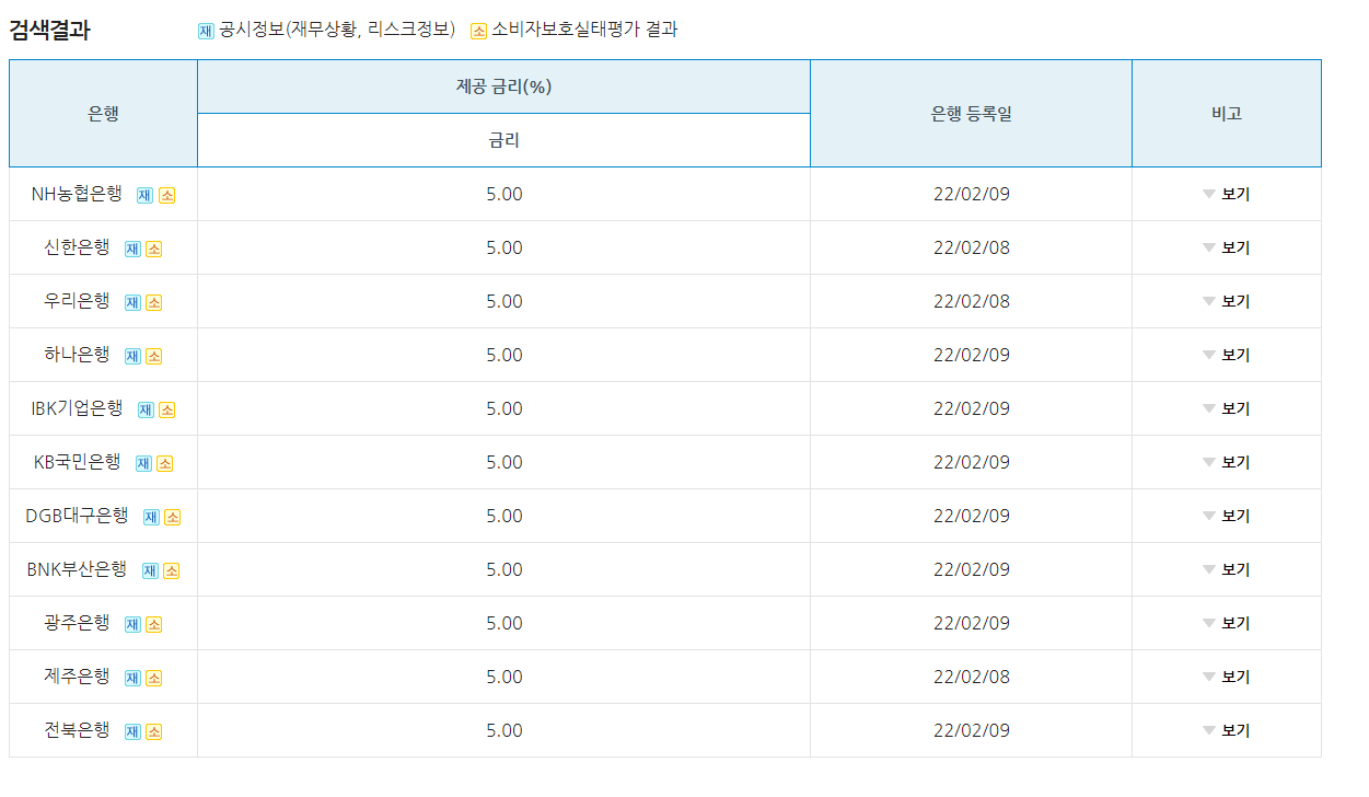 두 번째, 금일 청년희망적금 미리보기와 더불어 시중은행 금리