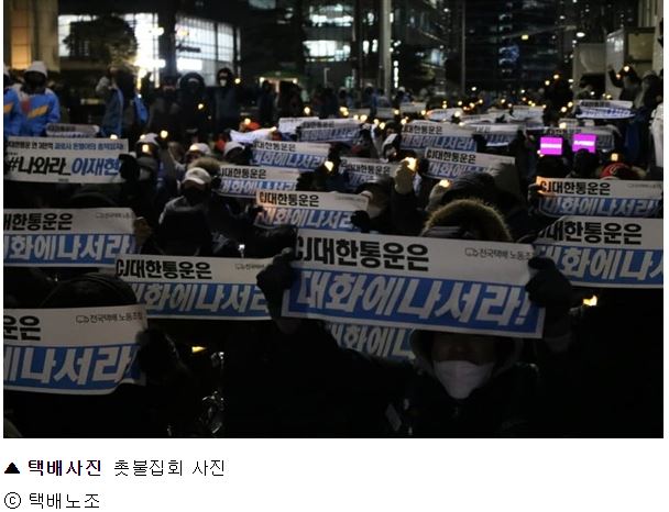 *지난해 1월 합의 타결 6일 만에 택배 노조 총파업 예고(파업 하루 전 극적 타결이 이루어졌으나, 부정적 인식을 심어줌)