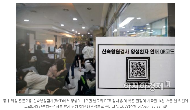 오미크론 확산으로 현재 일일 확진자는 40만 명. 정부는 곧 정점을 찍으리라 예측을 하고 있어 당분간 비슷한 추이를 보일 것으로 예상된다.