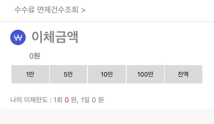 지금은 이미 이체를 하고 난 뒤라 이체한도가 0원으로 나오는데, 원래는 30만 원이었다.