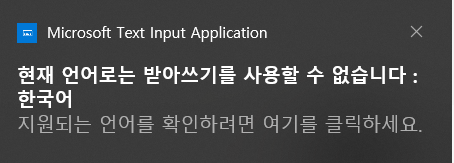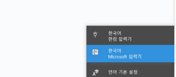 그럼에도 해결되지 않는다면? 바탕화면 오른쪽 하단에 작업표시줄에서 언어입력기를 클릭한 뒤 입력방식을 'Microsoft 입력기'로 바꿔주면 된다. 그럼 해결!