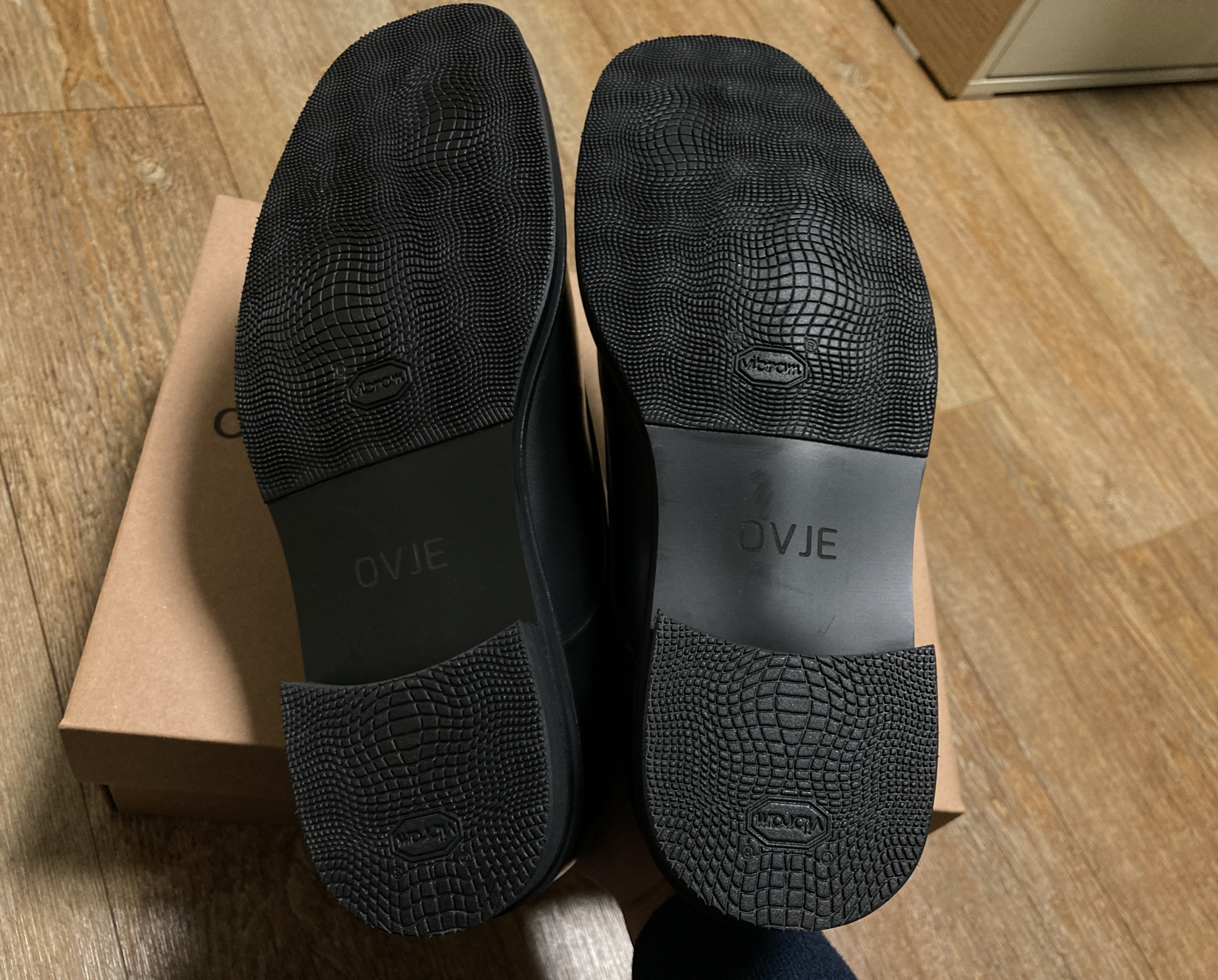 신발은 너무나 만족한다. 사진이 조금 어둡게 나왔는데, 실제론 공홈 제품 상세사진과 진~~~짜 똑같다. 안에는 OVJE가 새겨져 있고, 밑창은 뱀 패턴으로 돼있다.