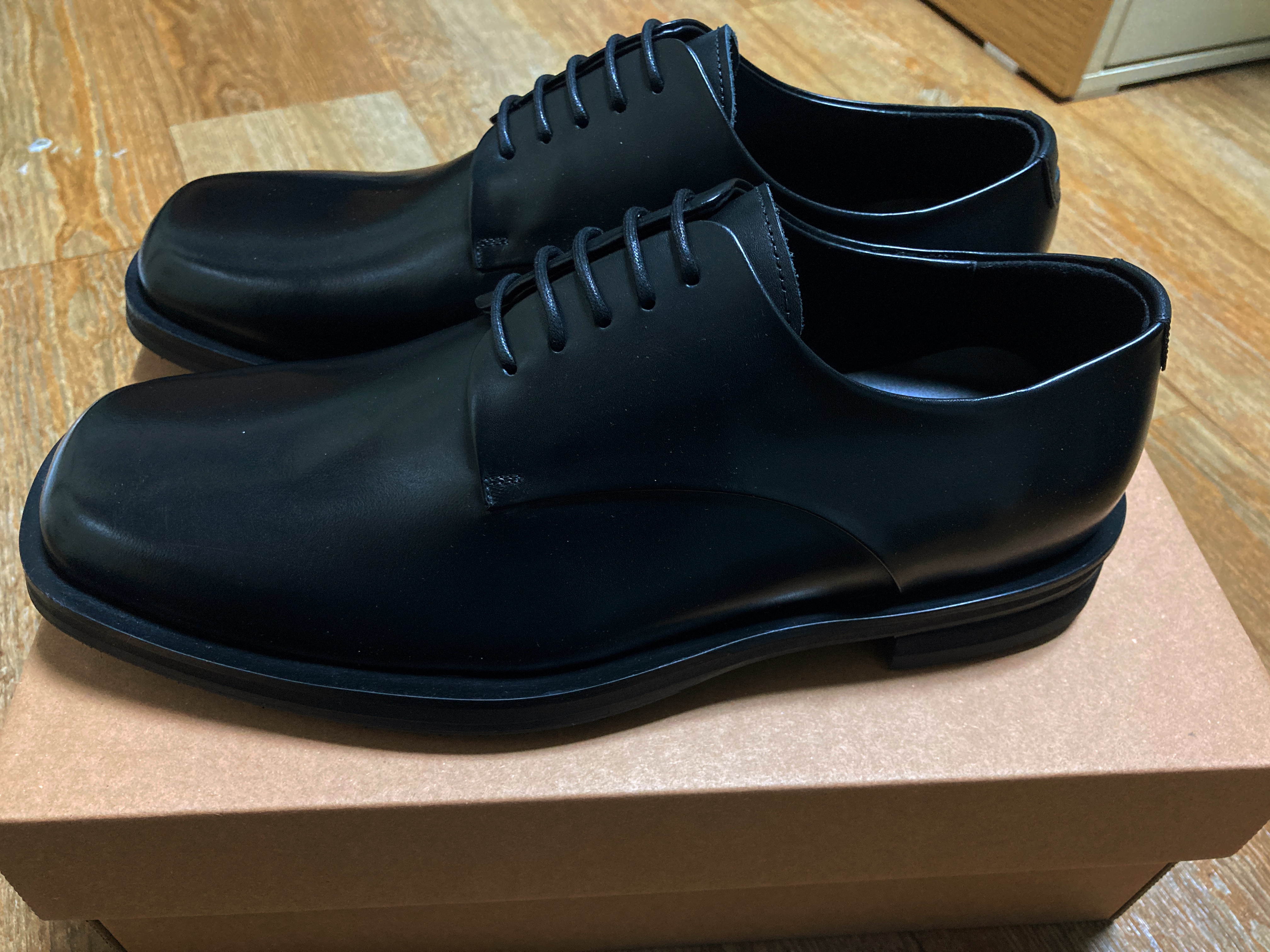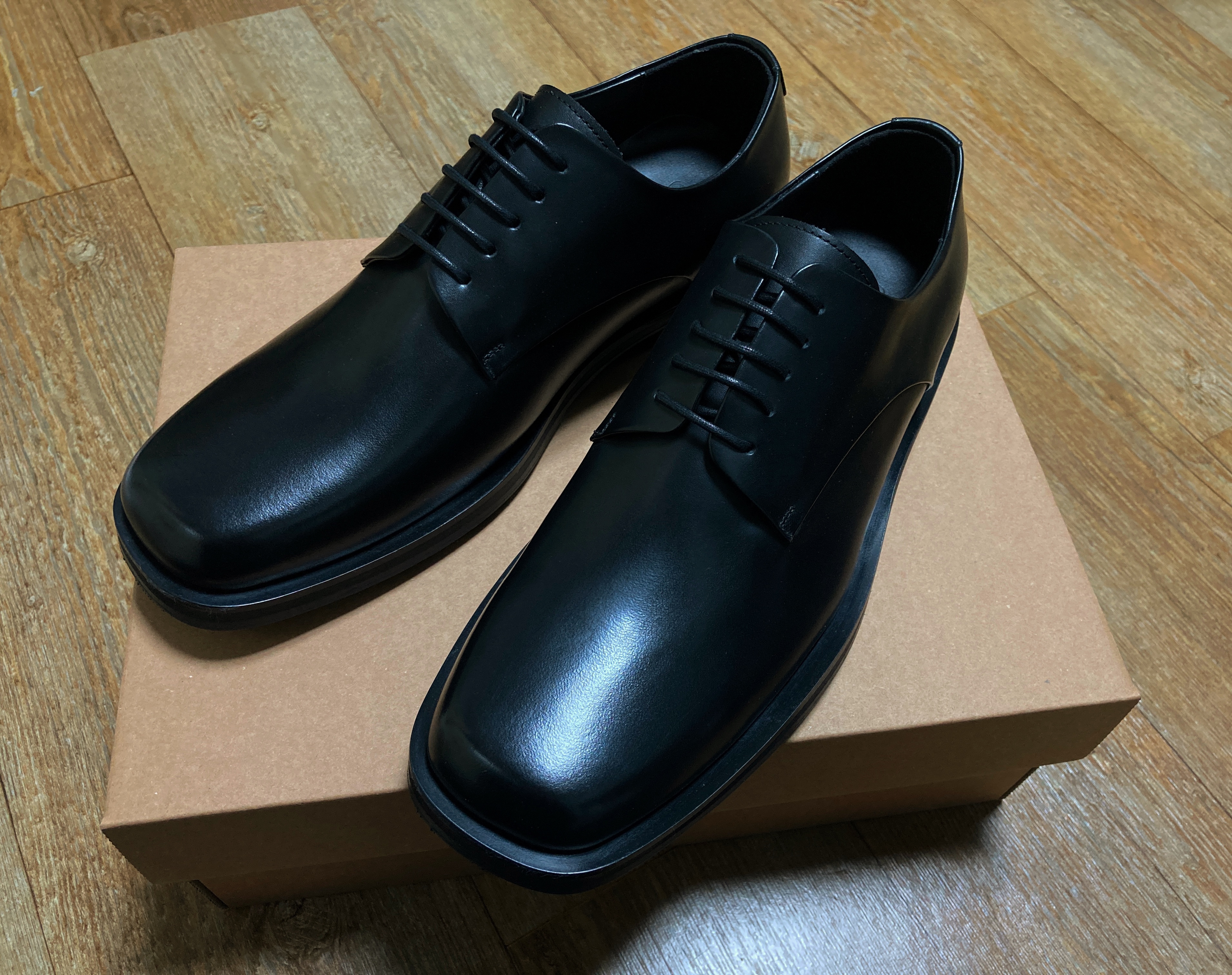 게다가 앞코도 세미 스퀘어로 과하지 않아서 너무 좋고, 착용감도 약간 크지만 꽤나 만족. 광택도 과하지 않다. 너무 칭찬일색 같은데 사실 외관은 정말 만족스럽기 때문,, 실제로 몇 번 신고 나가보면 착용감도 더 정확한 판단이 가능할 것 같지만 일단 굉장히 추천한다.