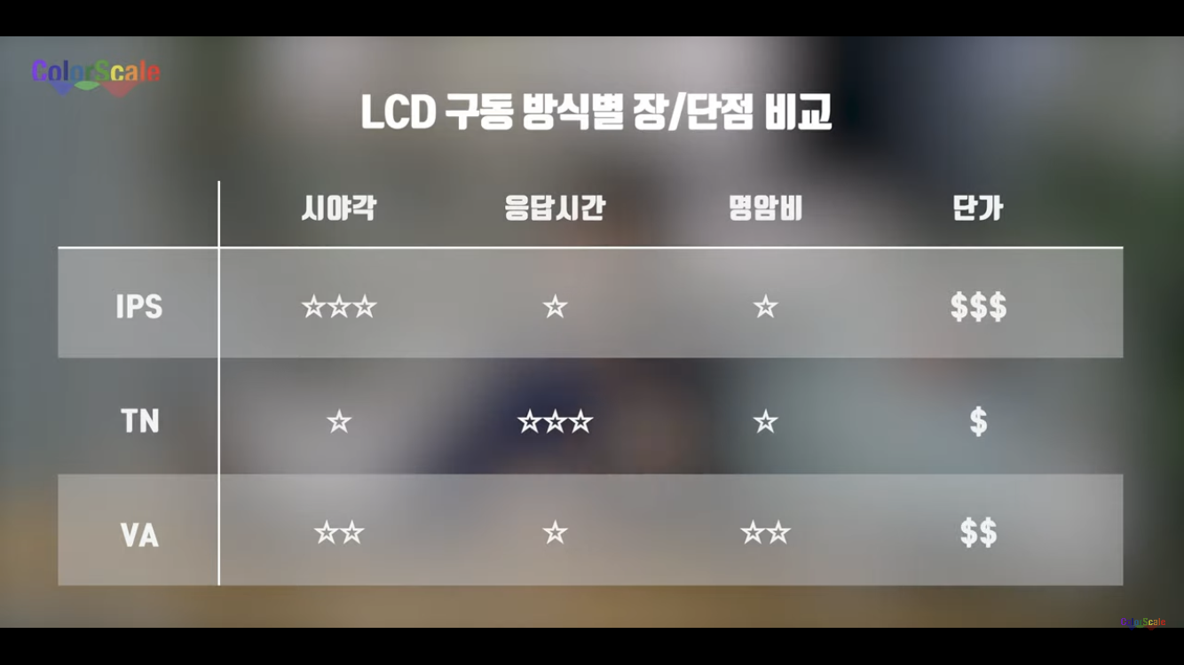 여담이지만, 옛날엔 백라이트를 형광등을 이용했는데 요즘은 에너지 효율이 좋은 LED를 이용해 빛을 낸다.