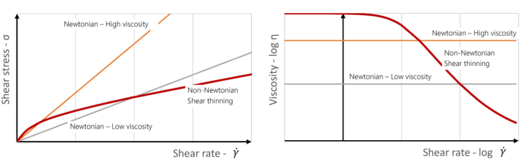 고분자의 점도 특성, 점성과 뉴턴영역, 전단박화