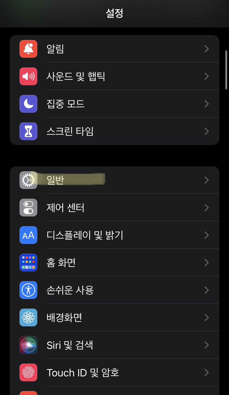 1) 설정에 들어가기