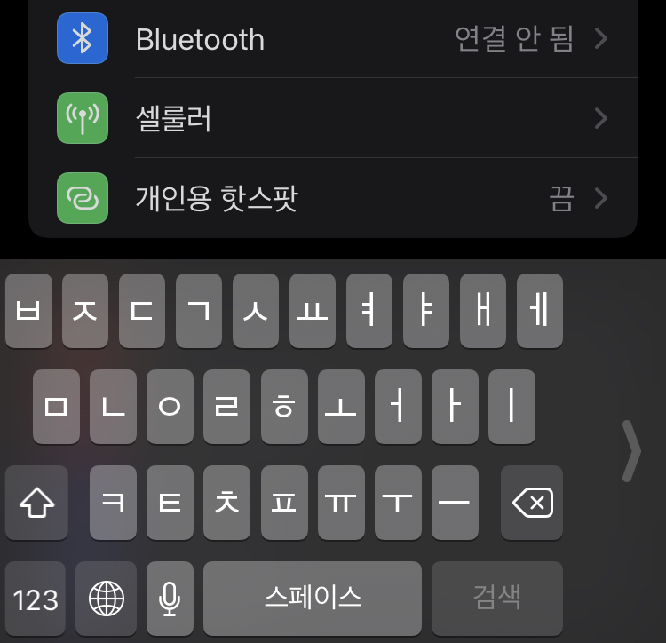 - 아이폰 설정 -> 일반 -> 키보드 -> 한 손 키보드 설정을 끔 혹은 왼쪽, 오른쪽으로 설정하여 한 손 모드를 설정할 수 있다.