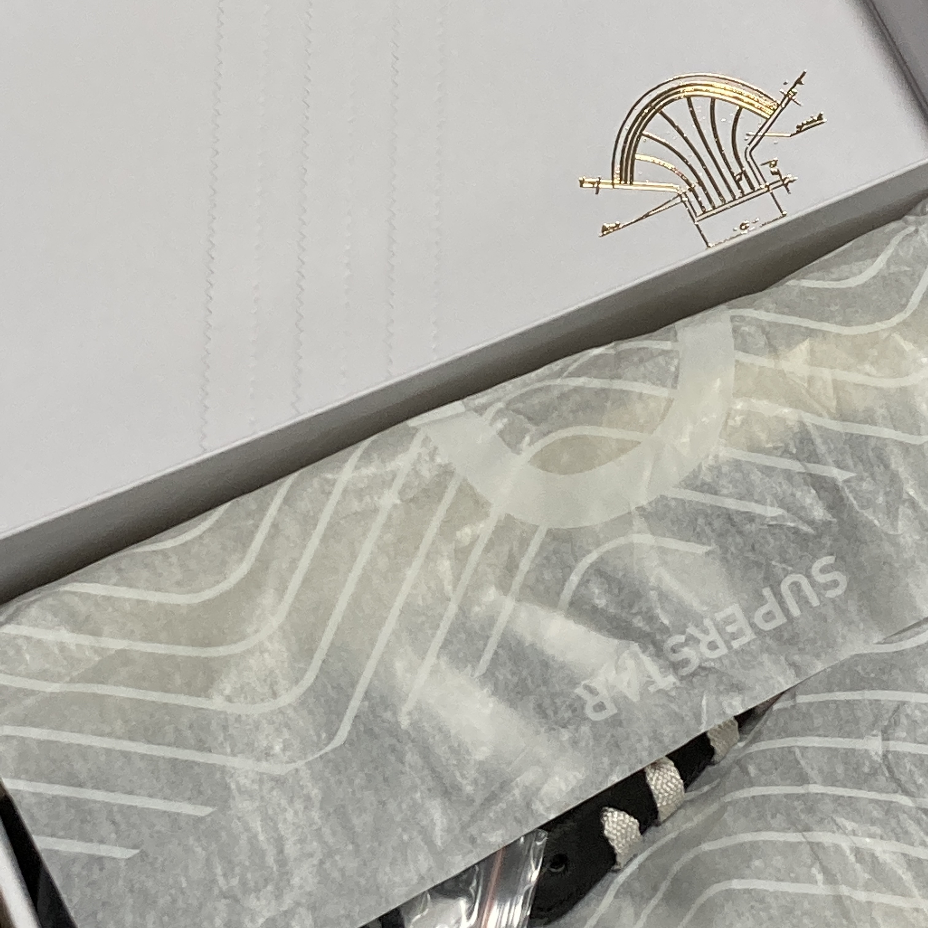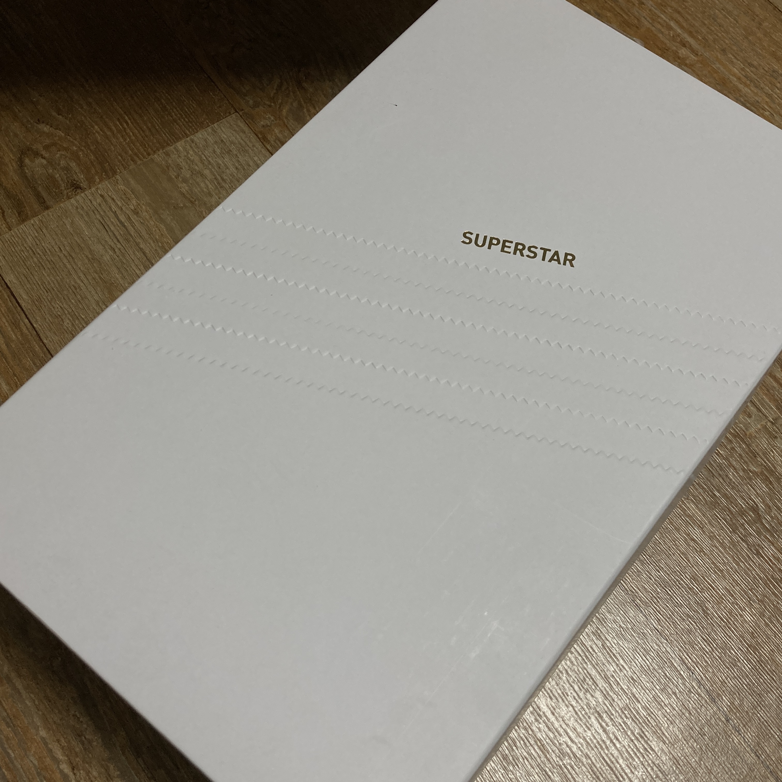 신발 박스는 파란색이 아닌 흰색으로 된 아디다스 슈퍼스타 박스. 나라별로 박스 색은 다른 경우도 있는 것 같다. 나는 흰색 모델을 샀을 때는 파란 박스가 왔기 때문.