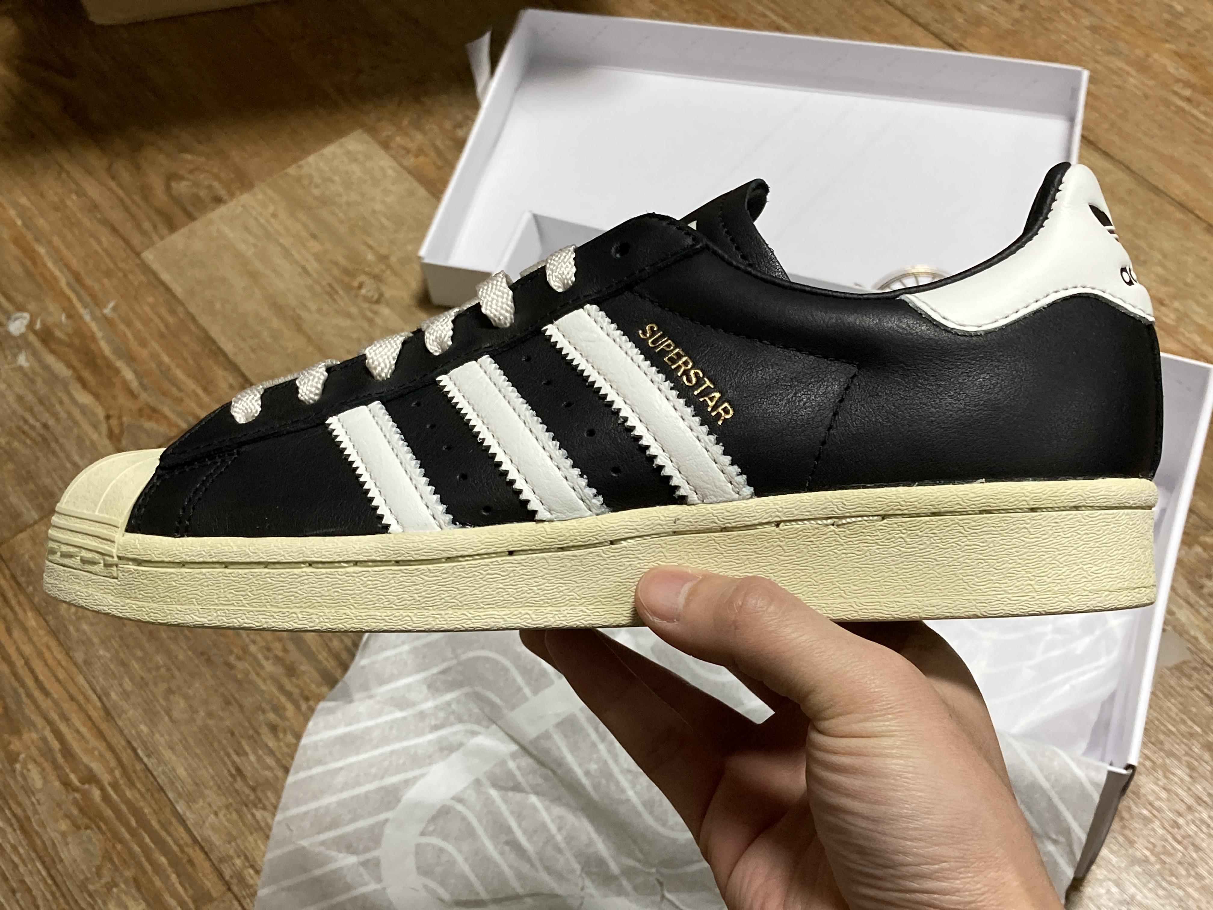 예전에 슈퍼스타가 한참 유행했던 기억이 난다. 다만, 오리지널 슈퍼스타는 뭔가 영 끌리지 않았는데, 아디다스 슈퍼스타 블랙은 올해 유행하는 것처럼 아웃솔이 아이보리색으로 빈티지함을 더 했고, 프리미엄이라는 이름답게 겉의 소재가 가죽이고 좀 더 신경을 썼다고 들었다.