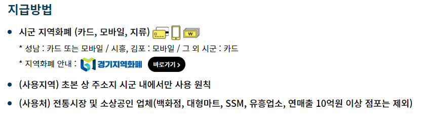 - 분기별 25만 원 지역화폐(모바일 혹은 카드)로 지급