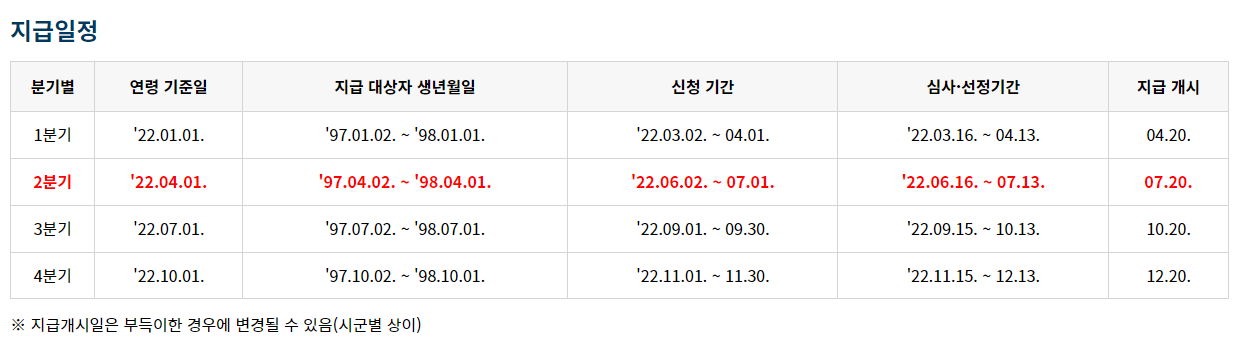 - 현재는 2분기 신청 기간(22.06.02. ~ 07.01.)