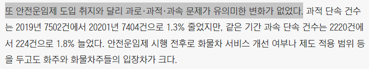 두 번째는 안전운임제 취지와 달리 과로·과적·과속 문제는 여전하기 때문