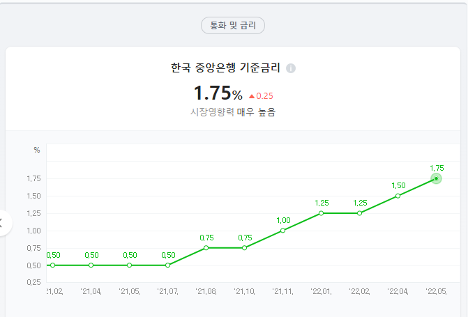 - 기준금리 1% -> 1.75%