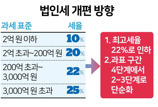대부분 인플레이션으로 인한 대처로 보인다만, 법인세 종부세들은 대부분 가진 자들을 위한 정책으로 인식이 되는 경우가 많다. 복지로 인해 세금이 많이 필요할 텐데, (부채도 많이 쌓여있고) 법인세와 종부세를 줄이는 것에 대한 부정적인 견해도 꽤나 있을 것이다.