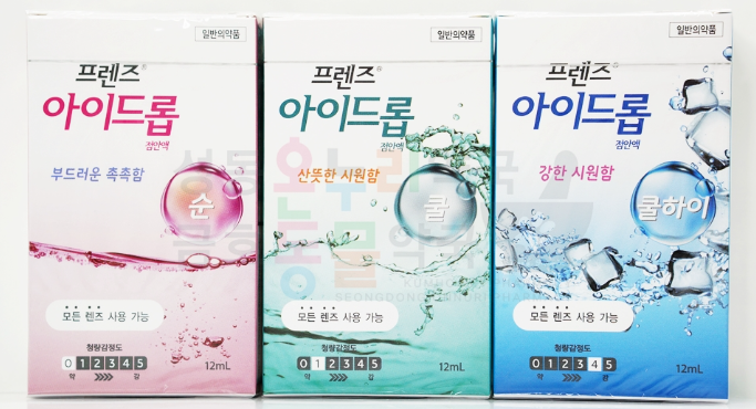 여기에 프렌즈 아이드롭 쿨, 쿨하이는 '멘톨' 성분이 추가돼있다. 눈이 화아아한 청량감을 느끼고 싶다면 이 제품을 선택하면 된다. 개인적인 생각으로는 눈에 들어가다 보니 순 성분을 많이 찾는 것 같다.