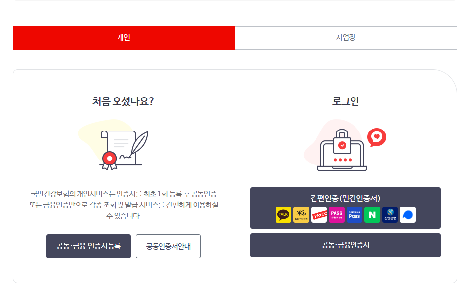 예전엔 공인인증서라 매우 번거롭고 빡쳤지만, 현재는 네이버나 카카오 등을 통해 간편인증이 가능하다. 원하는 방법으로 본인인증을 하여 로그인을 한다.
