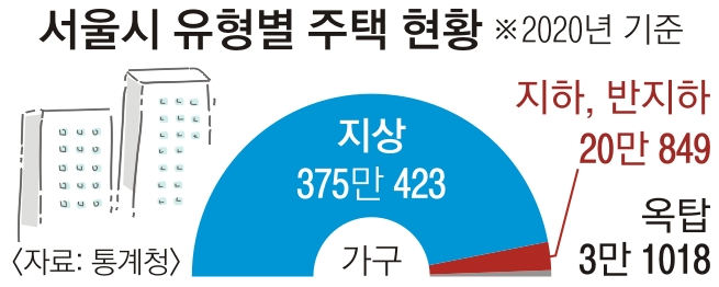 ▲ 서울 시내 반지하 가구는 20만 호다. 이는 강남구 전체 가구수와 비슷하다. 대부분 반지하를 살고 싶어서 사는 게 아니라 현실적인 이유로 집값이 저렴한 반지하에 사는 것이다. 이들이 반지하를 없애 나가게 되면 옥탑방, 고시원 등 열악한 주거시설에 머무는 건 변화가 없다. 이들에 대한 주거대책을 우선적으로 세워야 한다.