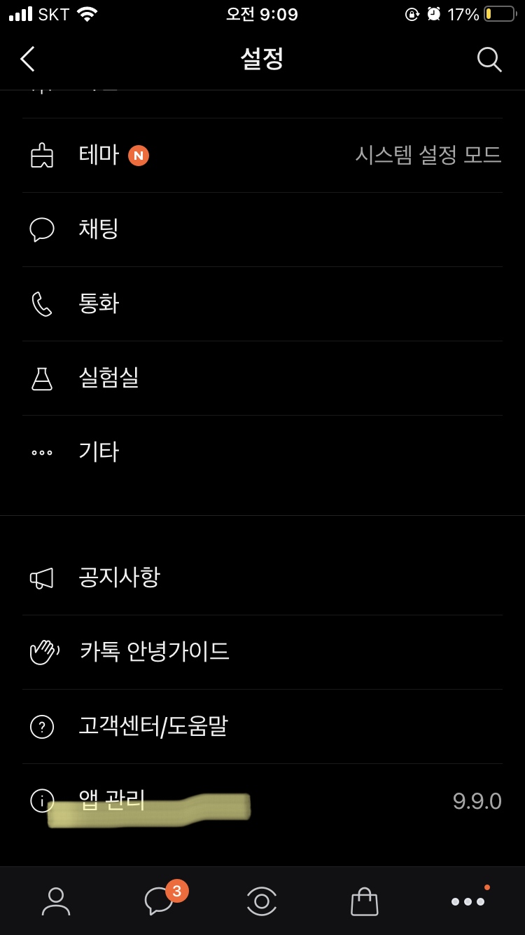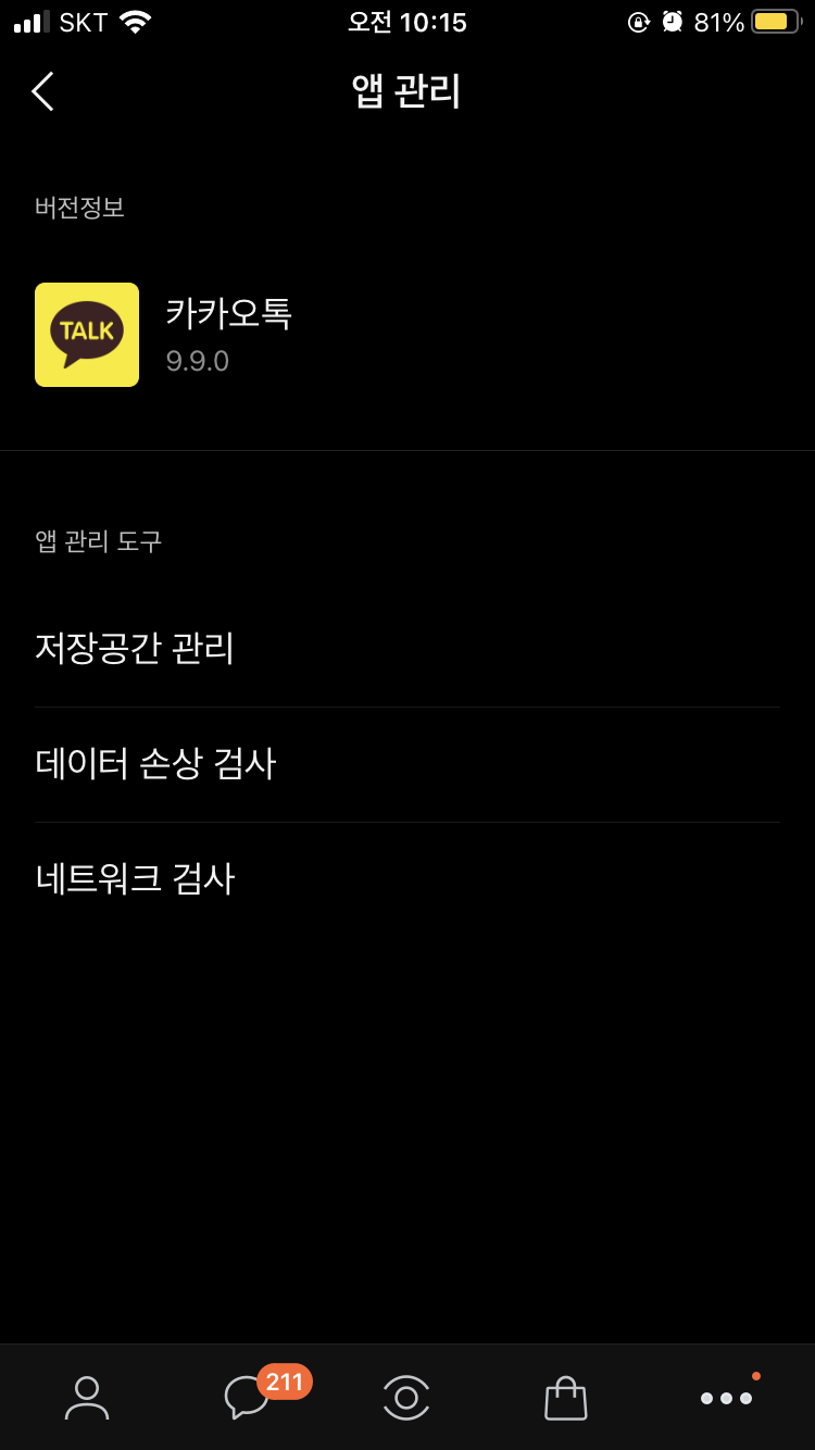 카카오톡 9.9 업데이트로 바뀐 캐시 데이터 삭제 위치