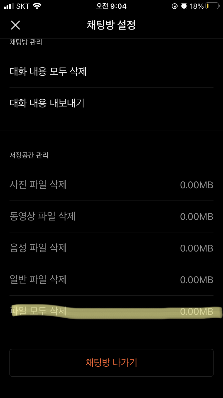 두 번째는 채팅창 내 저장된 파일 모두 삭제