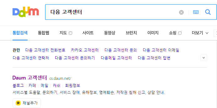 1) 다음 고객센터를 포털에 검색하여 들어간다.