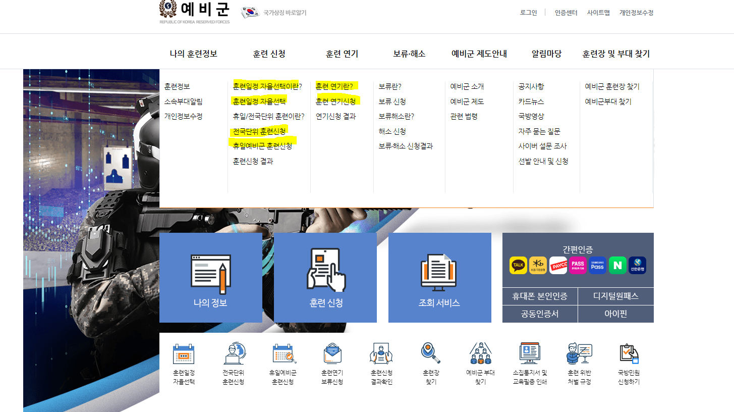 2) 전국단위 및 휴일예비군 훈련신청