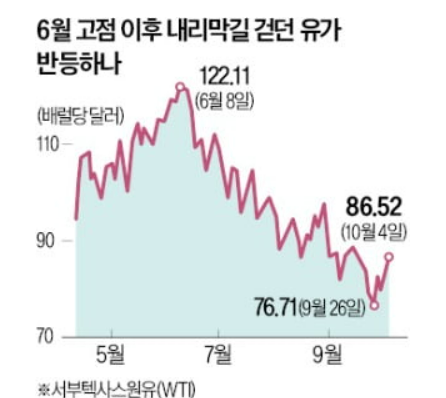 러시아의 우크라이나 침공 이후, 국제 유가가 확 뛰었었다.