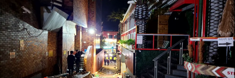 ▲ 그러나, 인파가 더 많아지면서 통제가 어려웠고, 사건이 발생했을 때 주변에 음악 소리와 대화 소리, 비명 소리가 섞여 상황 파악이 어려웠고 할로윈 코스튬으로 사망자 및 부상자 파악이 어려웠음