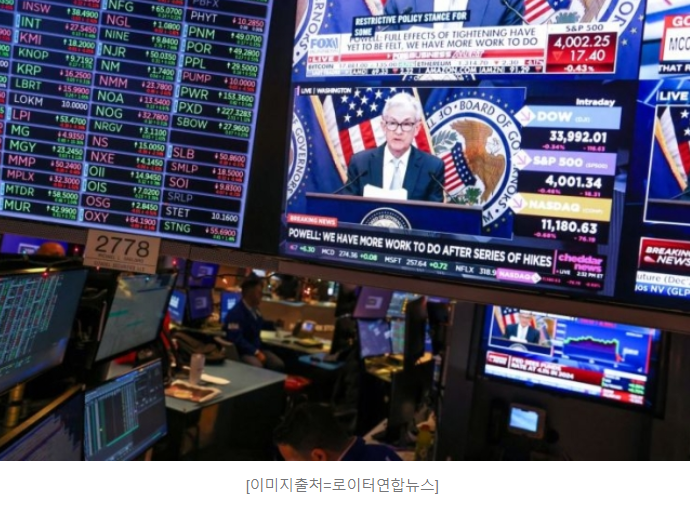 ▲ 기준금리 인상률을 조절한다고 하더라도 금리 인상 기조를 계속하겠다고 하자 통화 긴축으로 인한 경기 침체가 예상되자 투자가 경직된 것이다.