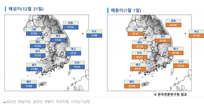 22년 12월 31일 해넘이 & 23년 1월 1일 해돋이 시간
