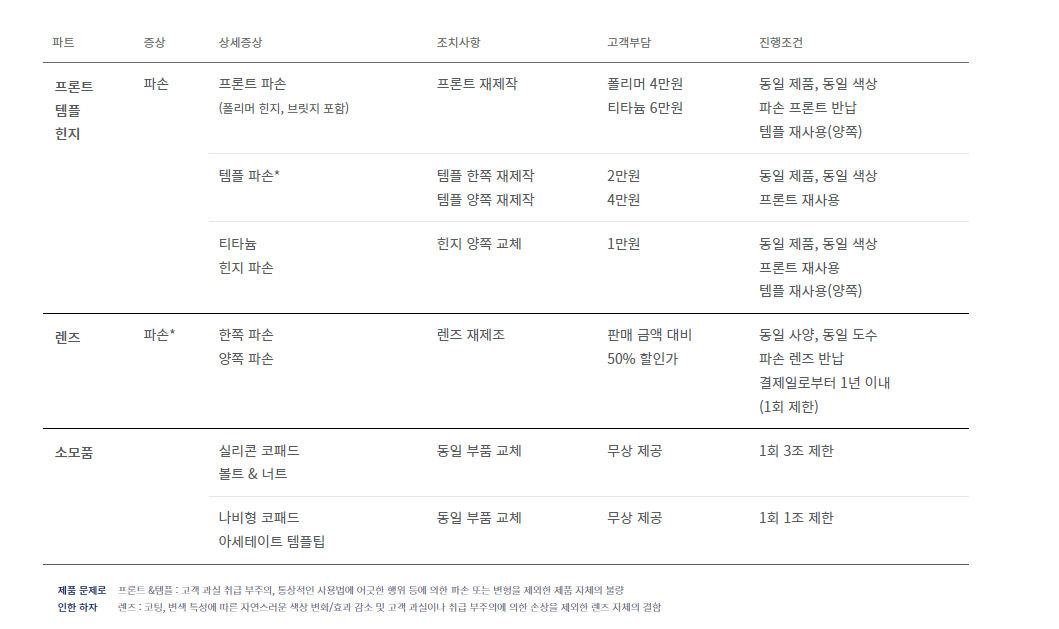 브리즘 수리 규정 *품질 보증 및 유상, 무상 수리 규정